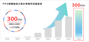 オンサイトPPAによる分散型太陽光発電所 開発発電容量 300MWを突破