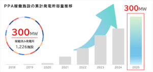 日本は国土の約 3 分の 2 を森林が占めています。太陽光発電の適地も少ないことも課題となっていますが、アイ・グリッドでは、既存の屋根や駐車場に太陽光発電設備を設置し、自然に負荷をかけない再エネを推進する GX ソリューションで企業の脱炭素化を支援しています。下図の通り、ここ数年で累計発電所容量も大幅に伸びています。導入企業さまにおいては、自施設での再エネ自給率を高めることで安定的な電力調達が可能となり、脱炭素社会の推進にもつながります。アイ・グリッドは引き続き、再エネ自給率を最大化する GX ソリューションの提供により、導入企業さまとともに脱炭素社会化を推進してまいります。