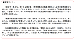 これらの結果から、人々は今年の夏を「単なる暑さ」ではなく、四季全体の変化を伴う異常気象として強く認識していることが分かりました。