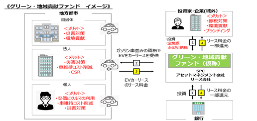こちらは太陽光発電システムのソーラーローンと同様の考え方で、初期費用が大きいEV車普及のため金融スキームを整え、初期費用を抑え、かつ月々の支払を出来るだけガソリン車に近い金額で提供するイメージです。ただ実際の車両価格自体は高いので、投資家や企業のESG投資の文脈でファンドを組成し、その差額を埋めるなどの可能性があるのではと考えています。