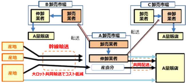 このような全国的な大規模な物流網を築くことにより、全国の各家庭に全国の野菜を安価に消費することができるのです。