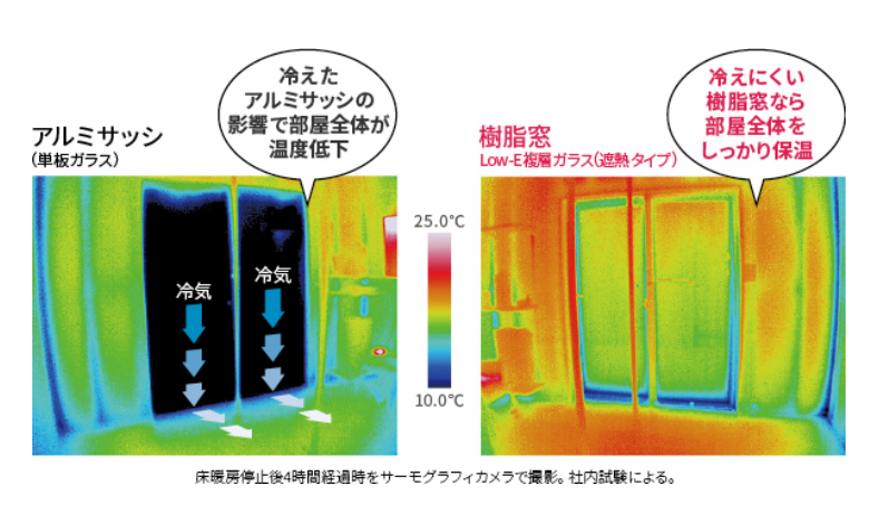 これにより、暖房の設定温度を1℃改善することができ、暖房使用量10%の改善につながっています。