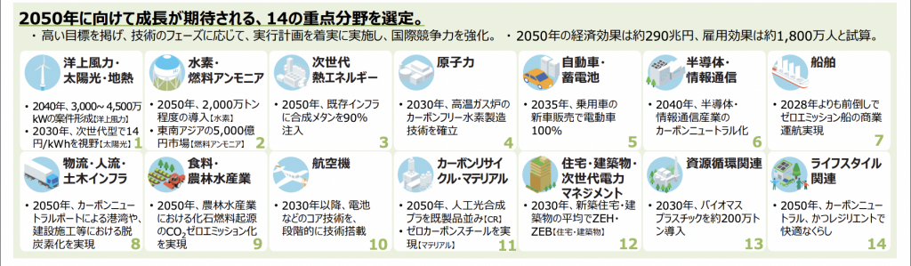 グリーン成長戦略の14の重要分野について