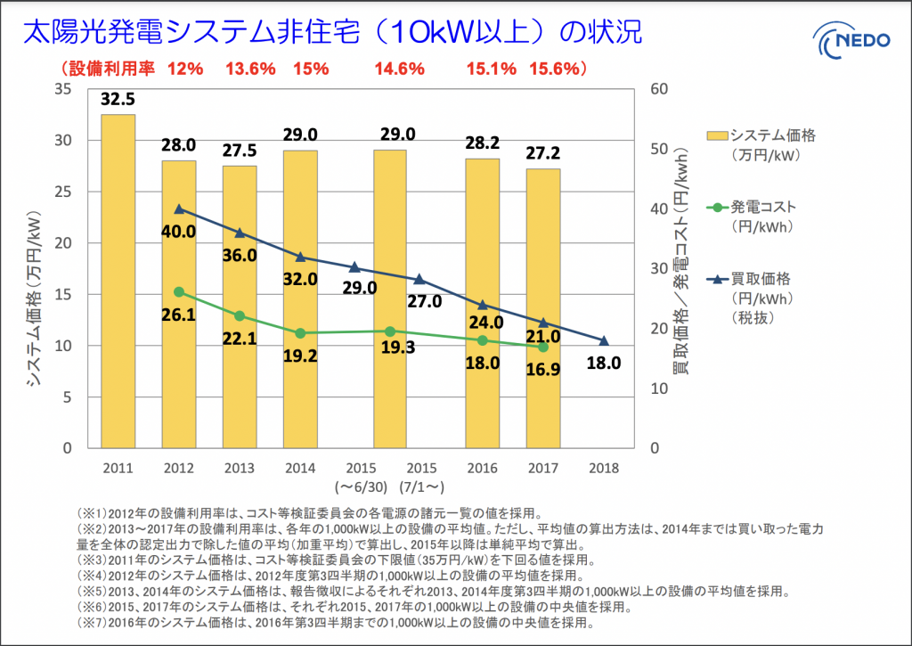 引用:太陽光発電システム非住宅(10kW以上)の状況 – (設備利用率 12% 13.6% 15% 14.6% 15.1% 15.6%)