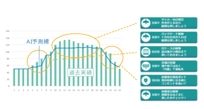 エナッジには約6,000事業所以上の省エネノウハウがインプットされており、搭載されたAIが電気の使用量を予測し、各事業所に具体的な省エネアクションを提案します。