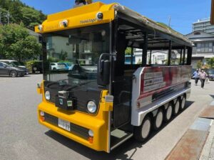 日本遺産のひとつ臨済宗大本山の永源寺が位置する滋賀県東近江市の道の駅「奥永源寺渓流の里」では、2021年4月23日から電動モビリティを用いた自動運転サービスをはじめました。自動運転サービスに用いられているのが、ヤマハのゴルフカートを改造した6人乗りの車両で、運行ルート上に電磁誘導線を敷設して運行しています。