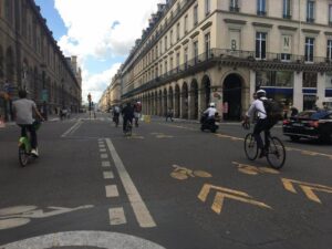 2024年にオリンピック・パラリンピックを開催するパリは、新型コロナウィルスのロックダウンを契機に、劇的に変わってきています。中心市街地のクルマが通る車線を、徒歩、自転車、電動キックボードに解放したり、カフェにしたりと、日常のほとんどの用事を徒歩や自転車で済ますことができる都市計画「15分都市」を目指しています。このように、道路の使い方を変えて、自転車や電動キックボードなどの電動モビリティのシェアリングを使って、環境にやさしく健康で活気のある街に作り変えていこうという動きが、欧米を中心に活発化しています。
