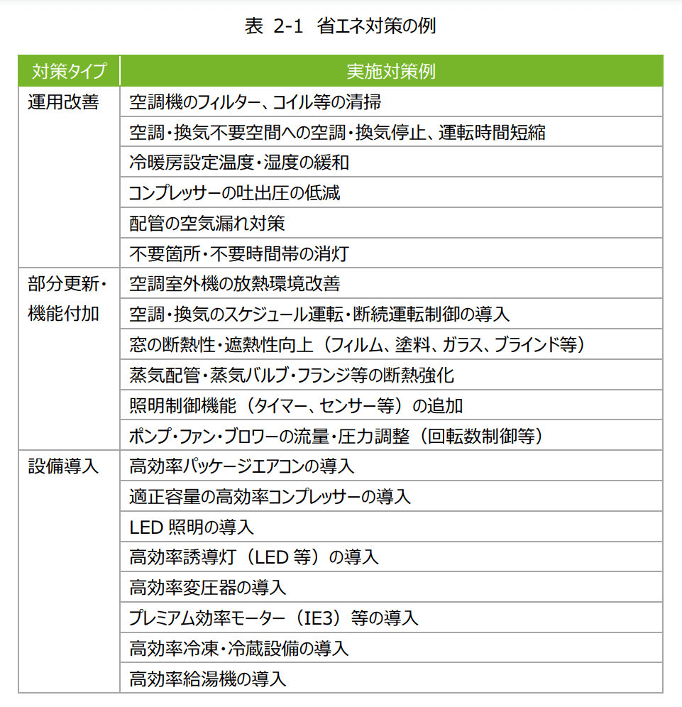 - 可能な限り、エネルギー消費量を削減する(省エネを進める)