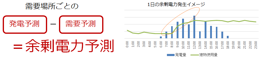 この発電量と使用量を正確に予測することで、その引き算により余剰電力量を正確に予測することが出来る。現在、この予測精度の更なる向上を図っている。