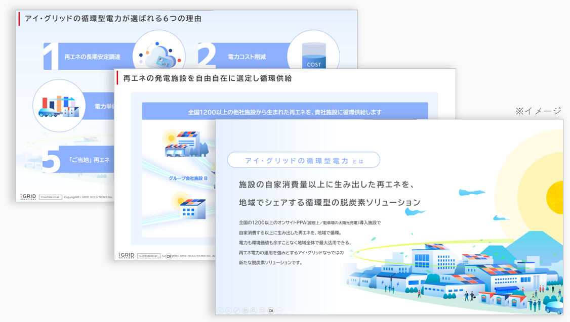 新概念の“置かない”太陽光! 全国の屋根や駐車場に開発した太陽光発電所から、設置施設の自家消費量以上に生み出した再エネを、地域・グループ企業・サプライチェーンで融通し、必要とする施設へと循環供給。