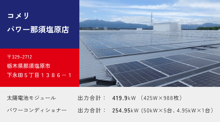 当社がお取り組みさせていただいた、補助金「クールネット東京」を活用した導入事例として、コメリパワー那須塩原店の詳細をご紹介します。