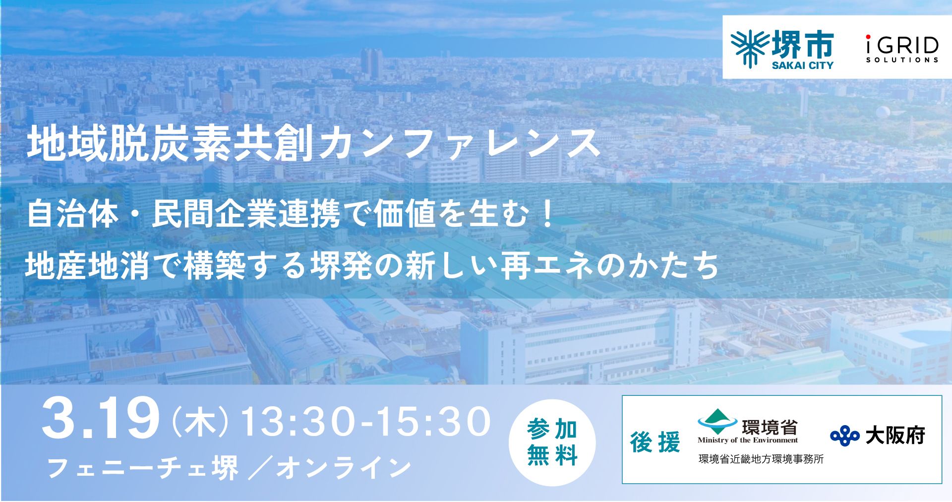 本カンファレンスでは、環境省選定の「脱炭素先行地域」の中でも、自治体と民間企業による先進的なスキームを構築している、堺市の”堺モデル”にスポットを当てます。