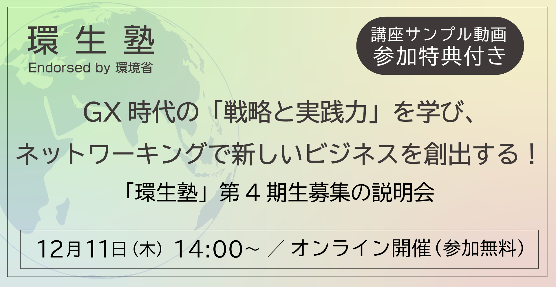 12/11(木)開催 /「環生塾」第4期生募集の説明会